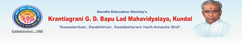 Krantiagrani G. D. Bapu Lad Mahavidyalaya Kundal is a reputed college in kundal area, succeeded in creating educational awareness among the people of Kundal and nearby villages especially about the importance of higher education of girls. all the ideas, memories and information of organisation described through one click.